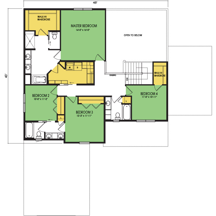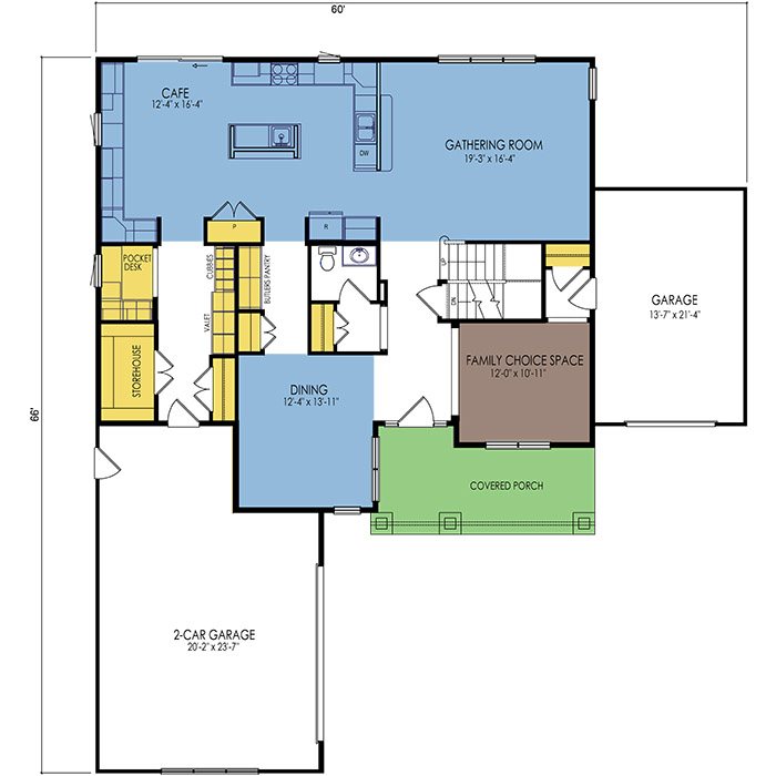A part of our dream series, the tamarack floor plan features 3 bedrooms and 1.5 bathrooms with a foot print of 44x30 feet and 1342 total square feet of living space.