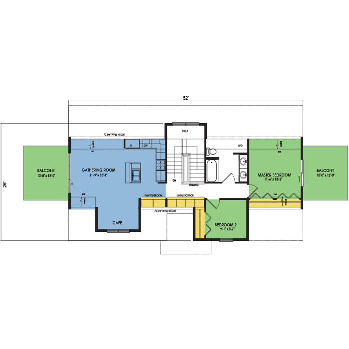 A part of our Vacation Series, the Carriage floor plan features 2 bedrooms and 1 bathroom with a foot print of 52x30 feet and 922 total square feet of living space. Floor Plan #VL200