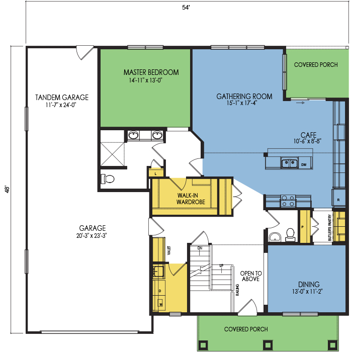 A part of our Resort Series, the Rainier floor plan features 3 bedrooms and 2.5 bathrooms with a foot print of 54x48 feet and 2203 total square feet of living space. Floor Plan  #RT348