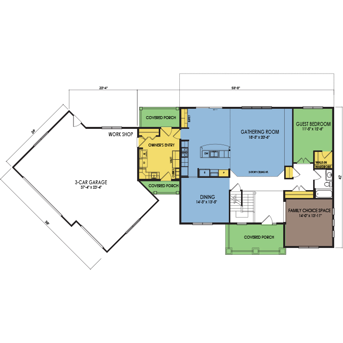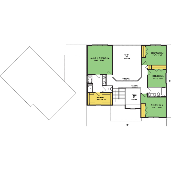 A part of our dream series, the tamarack floor plan features 3 bedrooms and 1.5 bathrooms with a foot print of 44x30 feet and 1342 total square feet of living space.