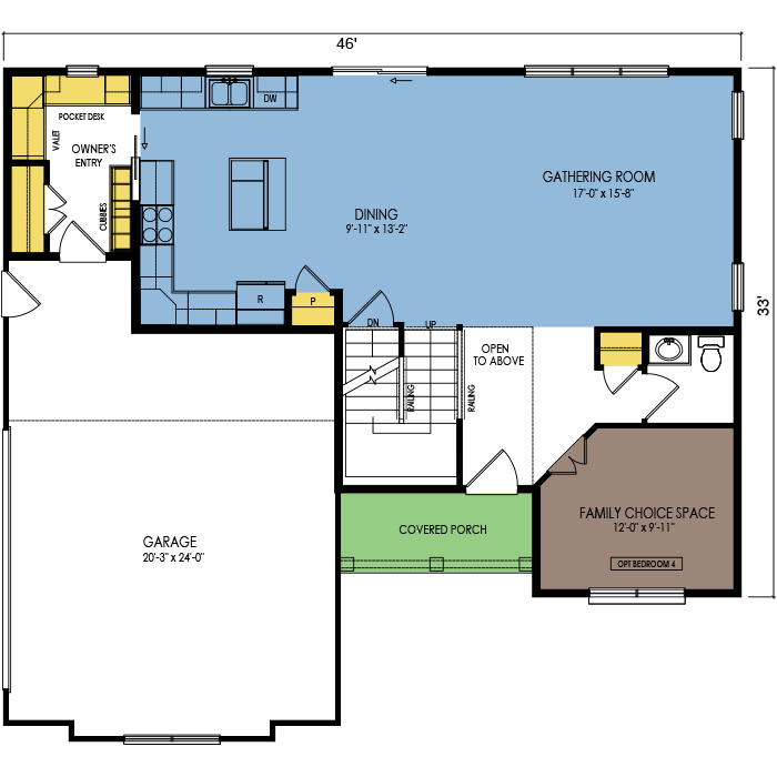 A part of our dream series, the tamarack floor plan features 3 bedrooms and 1.5 bathrooms with a foot print of 44x30 feet and 1342 total square feet of living space.
