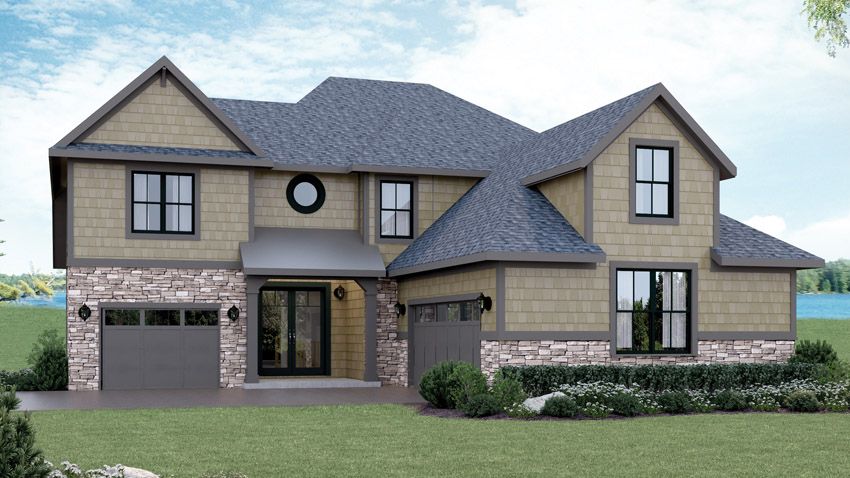 MONTREALIn Architect SeriesA part of our Architect series, the Montreal 2 story home floor plan features 4 bedrooms and 3.5 bathrooms. It has a footprint of 74x62 feet and offers 3,746 total square feet of living space. <p data-start="317" data-end="558">This beautiful <strong data-start="465" data-end="497">4-bedroom, 3.5-bathroom home</strong> offers an ideal layout for modern living and entertaining.</p> <p data-start="560" data-end="868">The heart of the home features an <strong data-start="594" data-end="613">open floor plan</strong>, seamlessly connecting the <strong data-start="641" data-end="681">kitchen, dining area, and great room. </strong>The soaring ceilings and an <strong data-start="711" data-end="728">open-to-above</strong> design enhance the sense of space and light. A <strong data-start="782" data-end="813">separate formal dining room</strong> provides the perfect setting for special gatherings.</p> <p data-start="870" data-end="1168">The <strong data-start="874" data-end="902">first-floor master suite</strong> is a true retreat, complete with <strong data-start="936" data-end="953">high ceilings,</strong> an <strong data-start="958" data-end="975">en-suite bath</strong> with a <strong data-start="983" data-end="1010">separate tub and shower</strong>, and dual <strong data-start="1021" data-end="1053">his and hers walk-in closets</strong>. You'll also find a dedicated <strong data-start="1084" data-end="1108">home office</strong> on the main level, perfect for remote work or quiet focus.</p> <p data-start="1170" data-end="1462">Upstairs, three spacious bedrooms provide plenty of room for family or guests. The <strong data-start="1253" data-end="1280">loft-style second floor</strong> includes a versatile <strong data-start="1302" data-end="1327">bonus gathering space</strong>, ideal for a media room or play area. Two full baths on this level include a <strong data-start="1405" data-end="1431">Jack and Jill bathroom</strong> shared between two bedrooms.</p> <p data-start="1464" data-end="1644">Practicality meets flexibility with <strong data-start="1500" data-end="1524">two separate garages - </strong>a <strong data-start="1527" data-end="1549">3-car garage setup</strong> that includes a <strong data-start="1566" data-end="1641">single-stall garage </strong>ideal for a workshop, extra storage, or hobby space. Each garage offers a private <strong>owner's entry</strong>, with convenient <strong>organization features</strong> and easy access to the<strong> laundry/mudroom.</strong></p> <p data-start="1646" data-end="1854">If you're looking for a four bedroom, three and a half bath home with a first-floor master suite, loft space, and home office, the Montreal floor plan delivers comfort, style, and flexibility to fit your family's needs. Floor Plan #AR373</p>